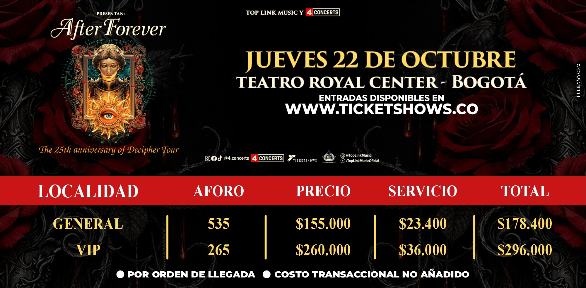 After Forever regresa a Colombia después de 2 décadas y celebra 25 años de “Decipher” y 26 años de “Prison of Desire”. 2025 marcó un hito para la banda: 25 años desde que After Forever dejó una huella atemporal en el mundo del metal sinfónico con nuestro álbum debut, ‘Prison of Desire’.