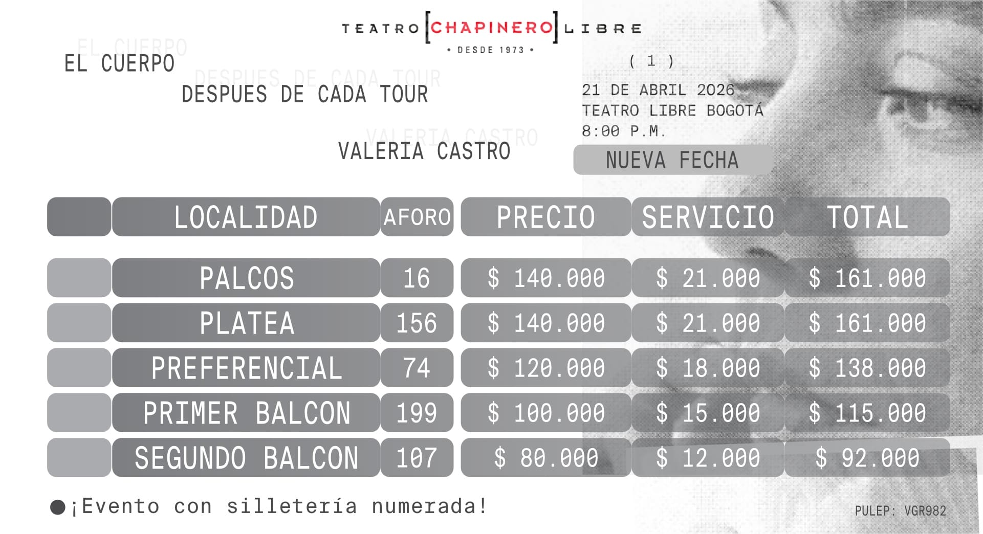 Tras completar una gira de 82 conciertos con entradas agotadas en teatros de más de 10 países con su primer álbum, Valeria presenta "el cuerpo después de todo", su segundo trabajo de larga duración. Producido por el ocho veces ganador del Latin Grammy Carles Campi Campón (Jorge Drexler, Natalia Lafourcade, Vetusta Morla), este álbum marca un ejercicio de maduración artística y personal. En él, la de La Palma da paso a una mujer fuerte que enfrenta sus miedos con valentía. Es un puzle de emociones que conecta con nuestros sentimientos más profundos y dormidos. Valeria, siempre fiel a su esencia, parece recordarnos aquella frase del escritor Antoine de Saint-Exupéry en El Principito: "Lo esencial es invisible a los ojos".